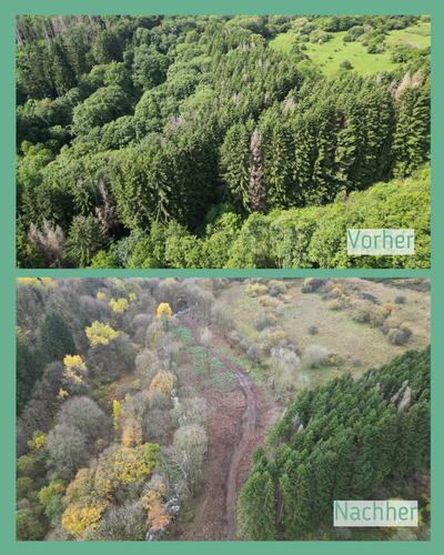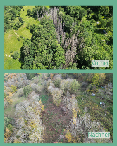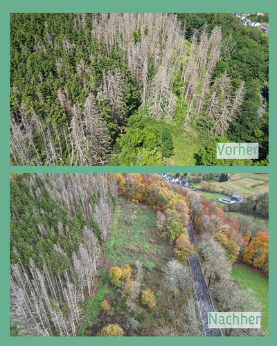 Im Sommer 2025 wurden auf sechs Flächen teilweise abgestorbene Fichten entfernt. In der Vergangenheit wurden im Siegerland auf vielen Waldstandorten Fichten angepflanzt, sodass große Waldgebiete heute von Fichtenmonokulturen geprägt sind.