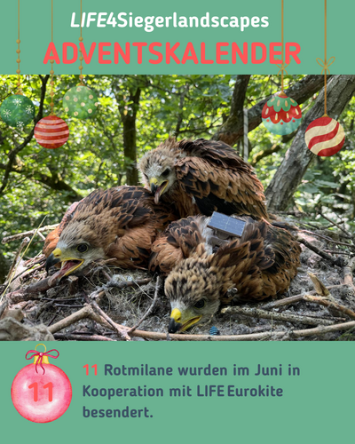 🎁 Tür 11: 11 Rotmilane wurden im Juni in Kooperation mit LIFE Eurokite besendert. 🦅