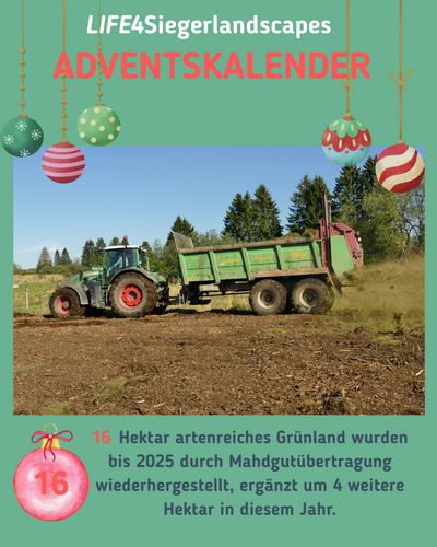 🎁 Tür 16: 16 Hektar artenreiches Grünland wurden bis 2025 durch Mahdgutübertragung wiederhergestellt, ergänzt um 4 weitere Hektar in diesem Jahr 🌱🌼