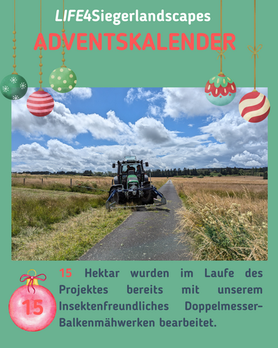 🎁 Tür 15: 15 Hektar wurden im Laufe des Projektes bereits mit unserem Insektenfreundliches Doppelmesser-Balkenmähwerken bearbeitet. 🦗🐞
