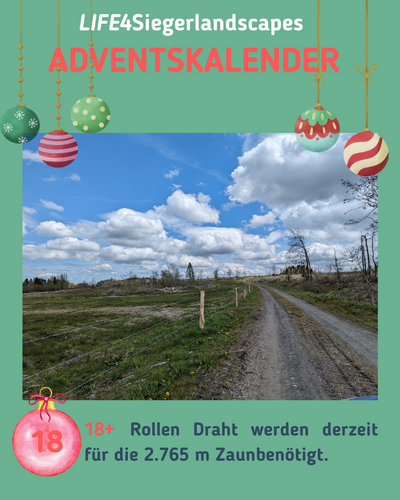 🎁 Tür 18: 18+ Rollen Draht 🧵 werden derzeit für die 2.765 m Zaun benötigt.