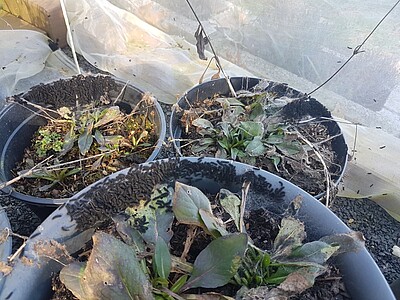 A total of around 700 plants were purchased to provide a sufficient food source for our caterpillars. The plants are still young, and some still have very small leaf rosettes. Some of the young plants have already been transplanted into larger pots so they have enough room to grow.