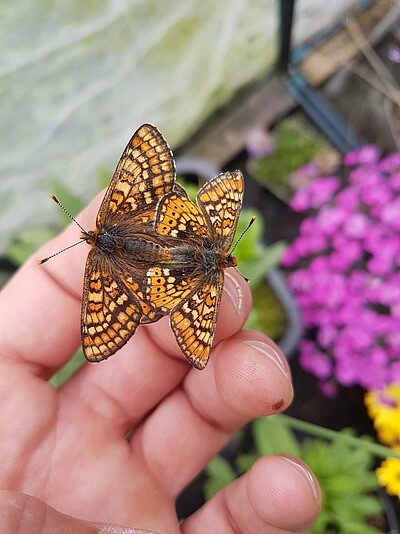 Am 28.08.2025 haben wir in Kooperation mit dem LIFE-Projekt helle Eifeltäler einen Expertenaustausch zum Schutz und zur Nachzucht des Goldenen Scheckenfalters (Euphydryas aurinia) durchgeführt. An dem internationalen Treffen nahmen neben Vertretern aus der Eifel, der Rhön und dem benachbarten Westerwaldkreis auch Fachkollegen aus Belgien und Luxemburg teil. In beiden Ländern sollen ebenfalls Projekte zum Schutz der bedrohten Schmetterlingsart umgesetzt werden, wobei unser Vorgehen als Beispiel dienen soll.