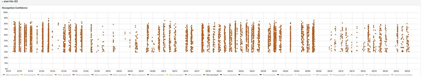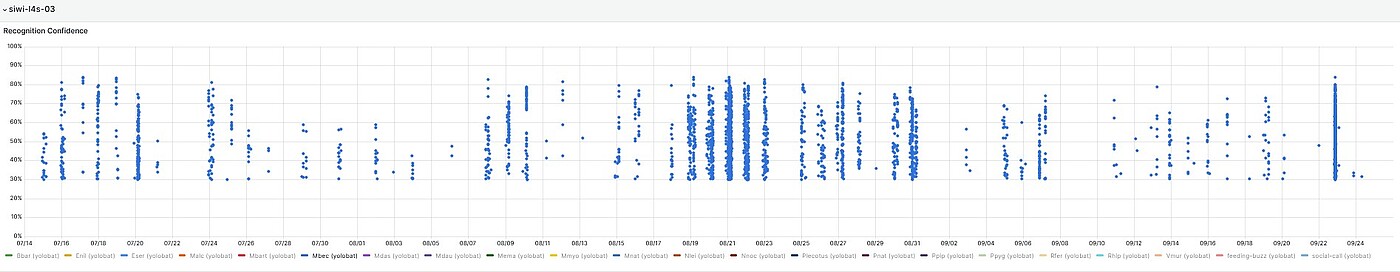 *Die Erkennungen können nur nach erfolgreicher Validierung als sicher angenommen werden. Die Grafiken zur Erkennungen werden im folgenden Slider gezeigt. Die X Achse beschreibt den Zeitpunkt der Erkennung und die Y Achse die Wahrscheinlichket der richtigkeit der KI Erkennung.