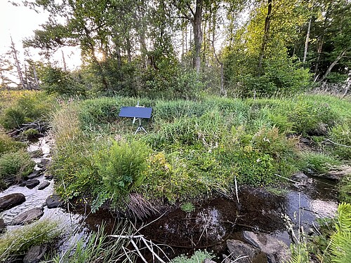 Gebiet | Das Modul wurde unmittelbar am Rand eines Schwarzerlenbestandes und am Ufer der Buchheller installiert. Auf der gegenüberliegenden Bachseite erfolgte auf einer Fichten-Kalamitätsfläche eine Initialpflanzung von Schwarzerlen (Alnus glutinosa). Die Jungbäume weisen eine Höhe von ca. 2,5 m auf. |