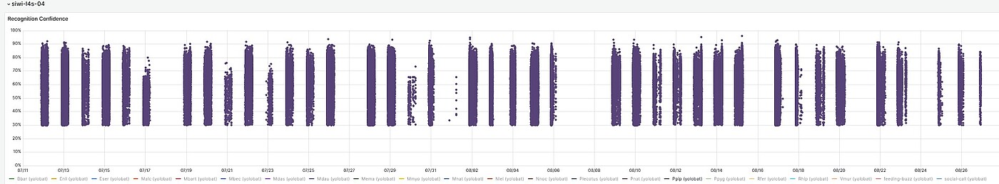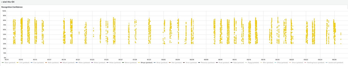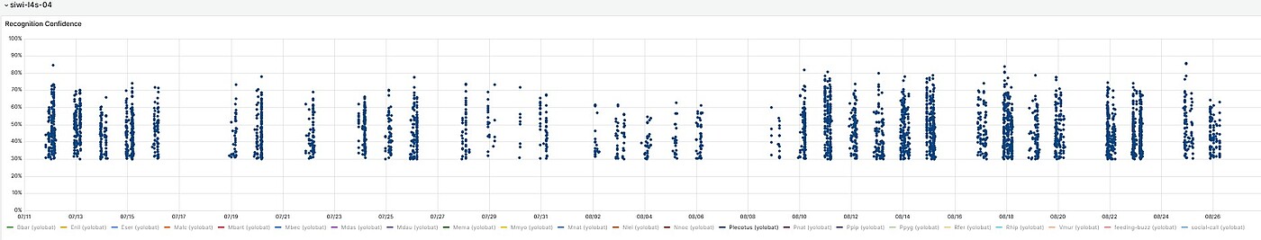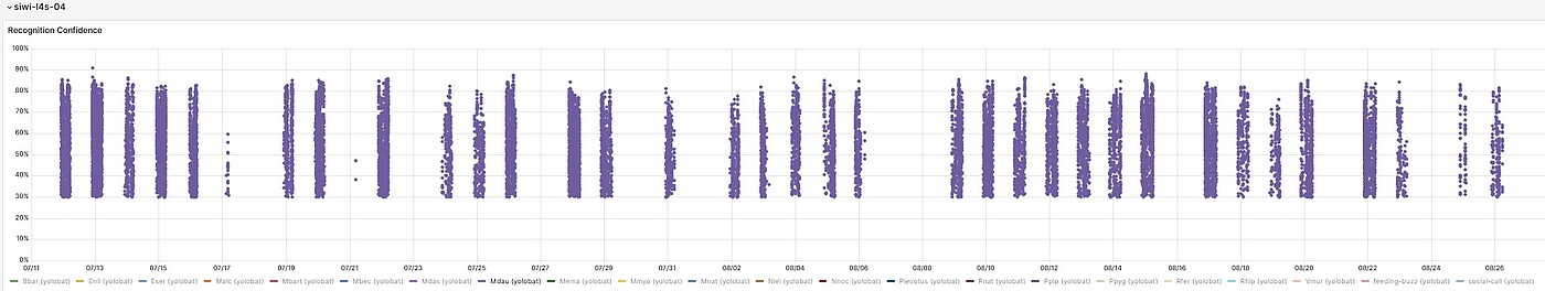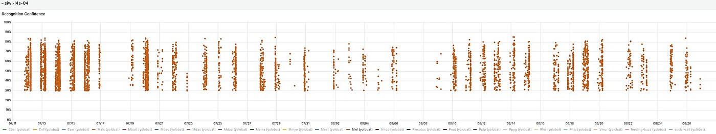 *Die Erkennungen können nur nach erfolgreicher Validierung als sicher angenommen werden. Die Grafiken zur Erkennungen werden im folgenden Slider gezeigt. Die X Achse beschreibt den Zeitpunkt der Erkennung und die Y Achse die Wahrscheinlichket der richtigkeit der KI Erkennung.