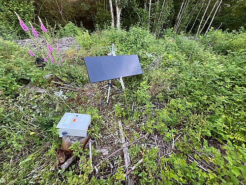 Gebiet | Das Modul ist auf einer Kalamitätsfläche aufgestellt, direkt angrenzend an einen Laubwald. Etwa 1 Meter innerhalb des Waldrandes befindet sich ein kleiner Weiher. |