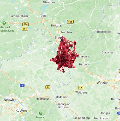 Der Sender ist heute um 17:00 Uhr in einer Höhe von 645 m ausgefallen. Die letzte Ortung erfolgte in Hessen, nördlich von Rabenscheid. Das letzte Signal des Senders deutet nicht auf einen Todesfall hin.