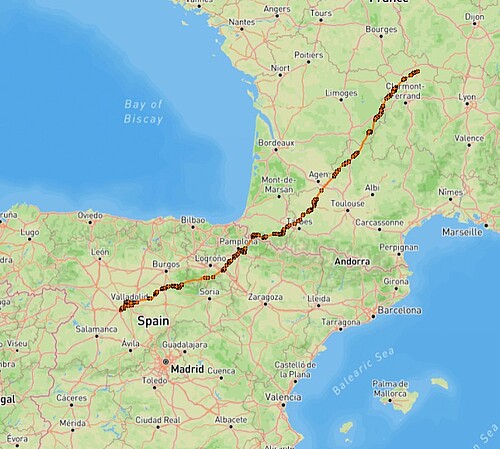 Am 7. Oktober erreichte Siggi spanisches Gebiet und flog bis nach Tordesillas, südwestlich von Valladolid. Leider wurde er dort am 14. Oktober tot aufgefunden. Die Todesursache ist bisher noch unklar.