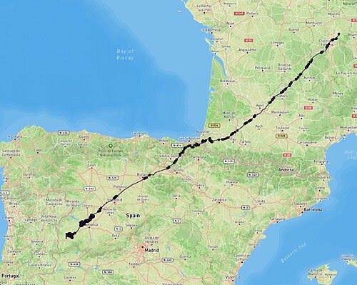 Am 5. Oktober erreichte WB-01 spanisches Gebiet und befindet sich derzeit etwa 50 Kilometer südwestlich von Salamanca.